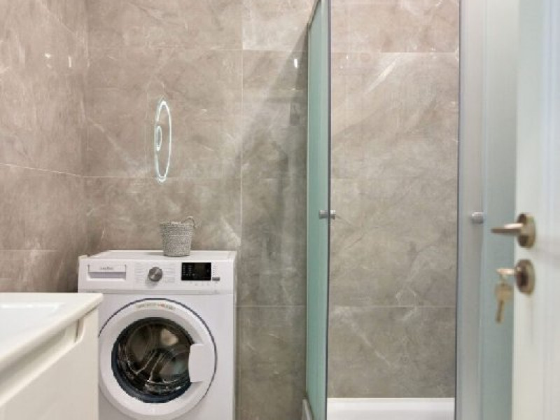 Oaz de relaxare in baie: baia este spatiul unde va puteti rasfata cu o baie revigornta sau un dus revitalizant. Dotata cu tot necesarul, inclusiv masina de spalat si cabina de dus, baia va ofera tot confortul de care aveti nevoie pentru a va simti ca acasa.