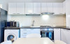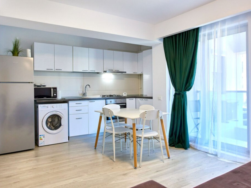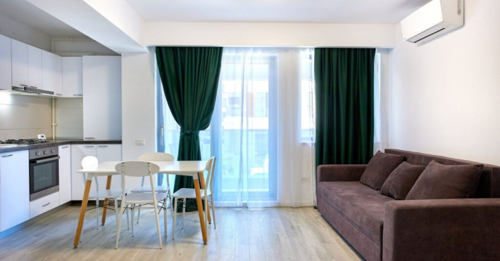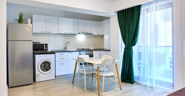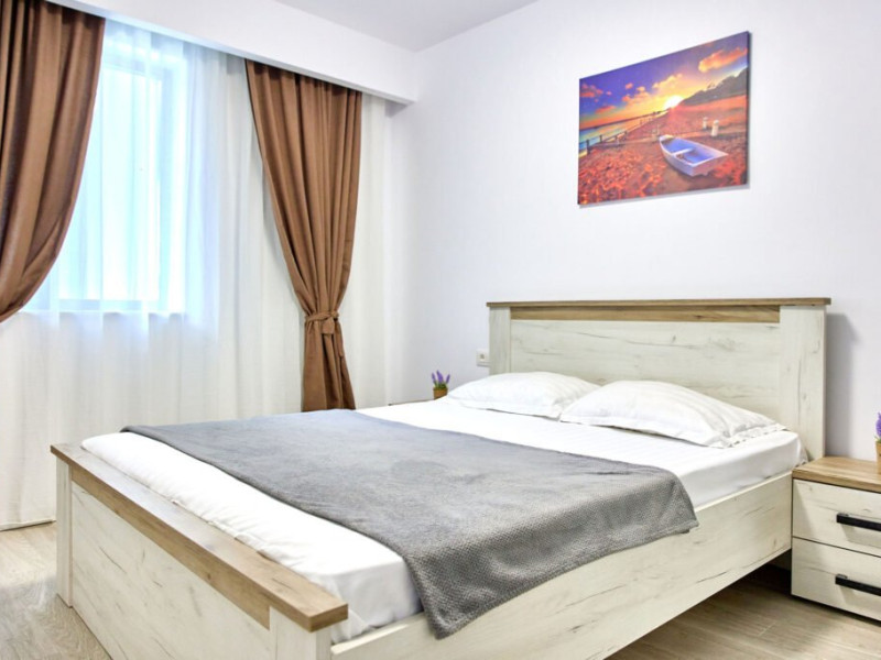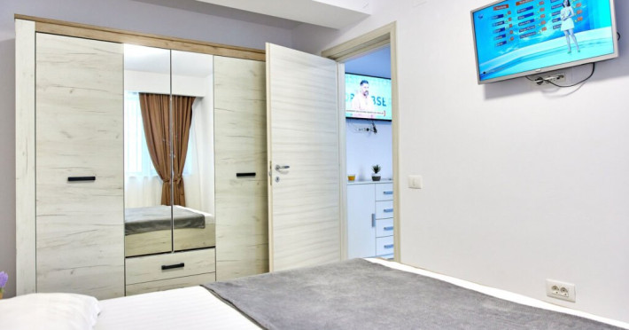 Apartamentul Laguna este compus din living open space cu canapea extensibila, dormitor cu pat matrimonial, bucatarie dotata cu aragaz modern, frigider, cuptor , cuptor cu microunde Ci maCin de splat, baie cu duC walk-in, tv, aer conditionat si balcon