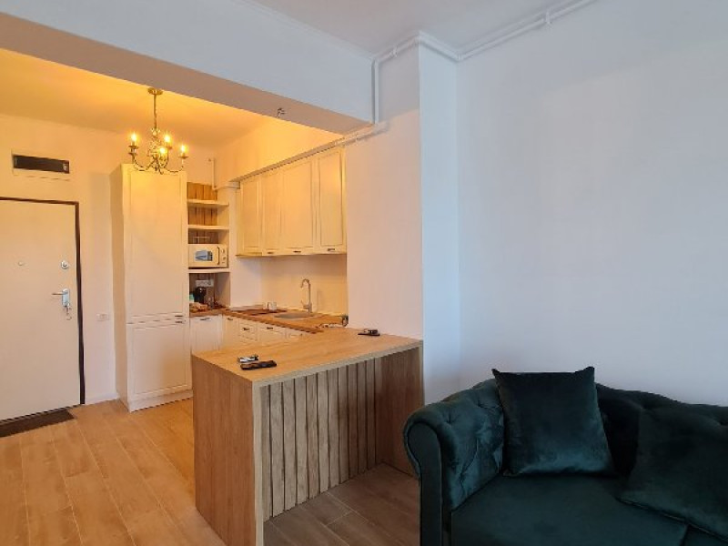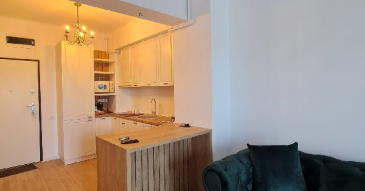 Bucatarie: Zona de gatit este definita de mobila eleganta care imbina functionalitatea cu estetica. Blaturile lucioase se potrivesc perfect cu finisajele, creand un spatiu perfect pentru gatit si servirea meselor. Este dotata cu plita moderna , hota, cuptor cu microunde ,aparat de cafea, frigider, vesela. Un coltar intim cu scaune asteapta oaspetii pentru a servi masa intr-un cadru placut.