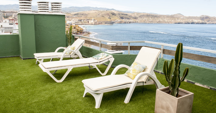 The apart hotel Brisamar Canteras is located next to a sandy beach. The nearest restaurants and bars can be reached in a few minutes on foot. The old town is around 3 km away. A supermarket and other shops you reach after approx. 150 m. In the surrounding a disco (approx. 150 m away), an aqua park (approx. 50 km), a theatre (approx. 3 km), a cinema (approx. 500 m) and a golf course (approx. 1 km) offer entertainment during the best time of the year. The beach is awarded a blue flag. The hotel is equipped with a 24h reception (check-in is possible around the clock), a lobby, Wi-Fi, a lift, a first aid kit as well as a TV lounge with satellite TV. Furthermore, you can relax outdoors on the sun terrace and in a garden. You can store your valuables in the safe (extra fee), and your luggage in the hotel`s storage roomn. For your entertainment, the hotel offers a library/reading room. For very young guests, cots can also be provided. For your clothes there is a laundry and ironing service. The rooms are cleaned. Guests at the accommodation can get a wake-up call from the hotel personnel. If you want to explore the holiday region, you can use the car rental service close to the hotel. At the hotel reception, tickets are offered for excursions in the area. Distances- Nearest town: approx. 0 m