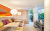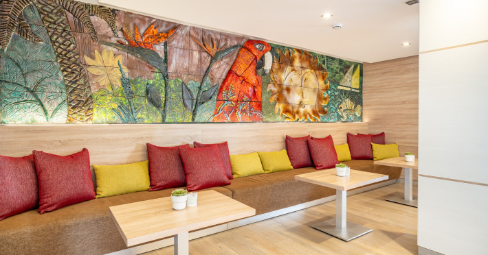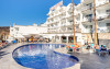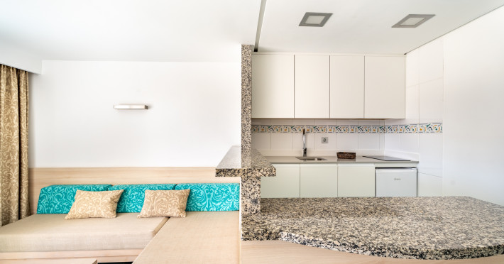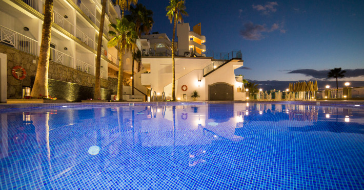 About 400 m from a beach lies the aparthotel Apartamentos Cala D'Or. The nearest restaurants and bars can be found within 200 m. The old town is around 76 km away. A supermarket and other shops you also reach after approximately 200 m. There is a 24h shuttle service between the hotel and the airport (for a fee) 24h a day. Nearby there is a disco, a leisure park and a golf course which offer entertainment in high season. The GPS-verified hotel is equipped with a 24h reception (check-in is possible around the clock), a lobby, Wi-Fi, a lift, a supermarket, showers and changing rooms, a first aid kit, parking spaces (limited) as well as a TV lounge with satellite TV. In the outdoor area you will find a garden as well as a supervised pool (open all year), where sun loungers and sun umbrellas are available for free. For children there is also a separate children's pool with a non-swimming area. Furthermore, you can relax outdoors on the building`s rooftop terrace. You can store your valuables in the safe (extra fee), and your luggage in the hotel`s storage room. In addition, the hotel Apartamentos Cala D'Or is video-monitored 24h a day. For very young guests, kid`s chairs and cots can be provided. The energy supply is 220 Volts. At the hotel reception, tickets are offered for excursions in the area. Euro/Master Card and Visa are accepted as means of payment. Catering As catering services the hotel offers self-catering. For the meals, there are a bar as well as the pool bar. Distances