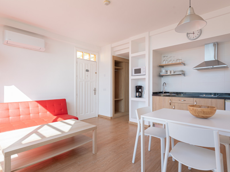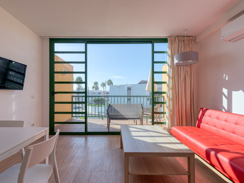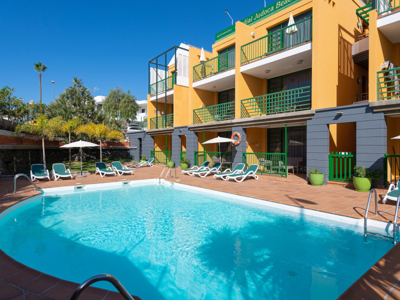 Around 200 m from a beach lies the aparthotel Apartamentos Cordial Judoca Beach (Adults Only). The nearest restaurants and bars can be reached in a few minutes on foot. The nearest shops you can reach within around 700 m. The hotel has a reception as well as Wi-Fi. In the outdoor area of the property you will find a pool (open all year). Furthermore, outside you can find a sun terrace. Distances- Discotheque: approximately at 1,3 km
