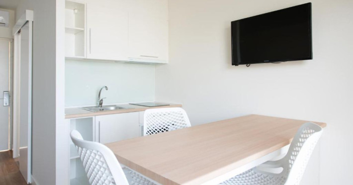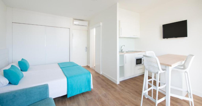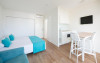 Recommended for adults, the studios feature a private balcony or terrace and include 1 double or 2 single beds, a sofa, 32' flat-screen TV with international channels, and a small dining area. A safe is available for a surcharge. The kitchenette comes with a hob and a microwave, and there is a hairdryer in the bathroom. Free WiFi is available in the reception area, and a portable hotspot can be requested for an additional cost.