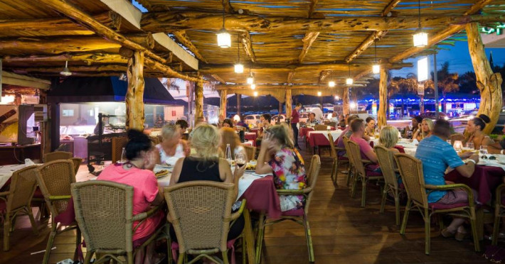 Restaurantul The Jet’s Moorea este deschis 18 ore pe zi, oferind carne la grătar, paella și fructe de mare proaspete. Există, de asemenea, o pizzerie deschisă nonstop, un pub irlandez și un bar plin de viață pe malul mării, cu DJ.