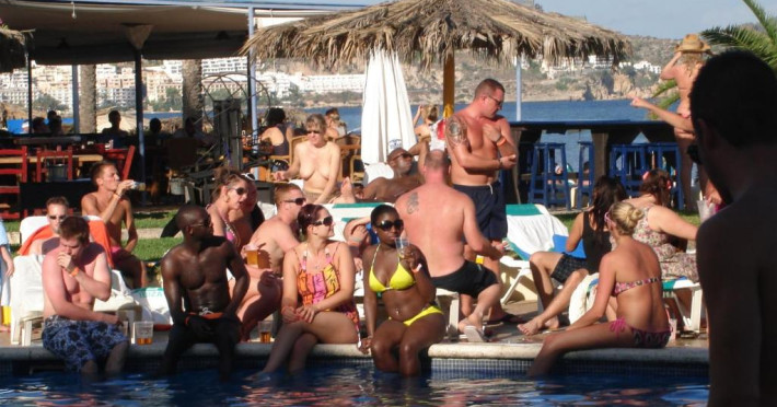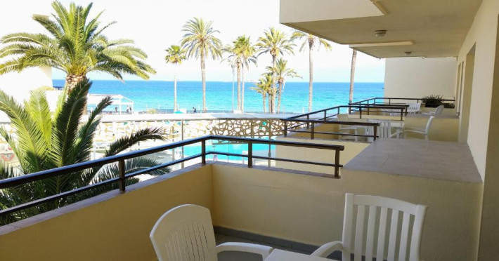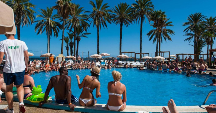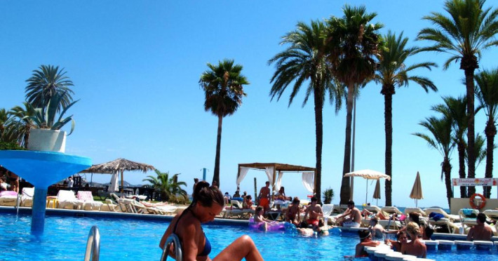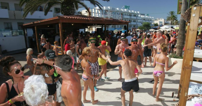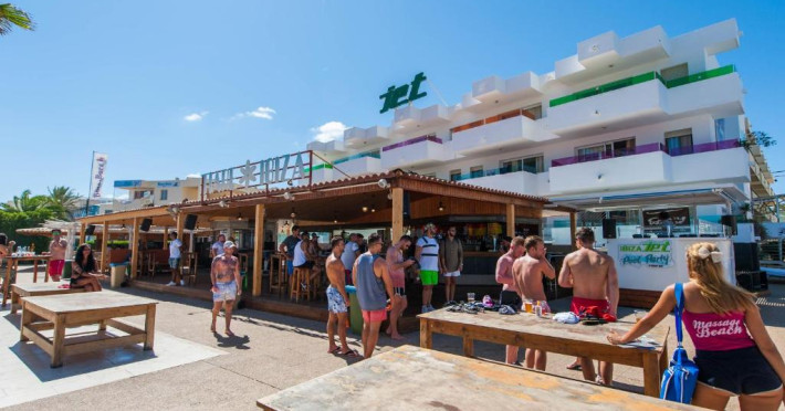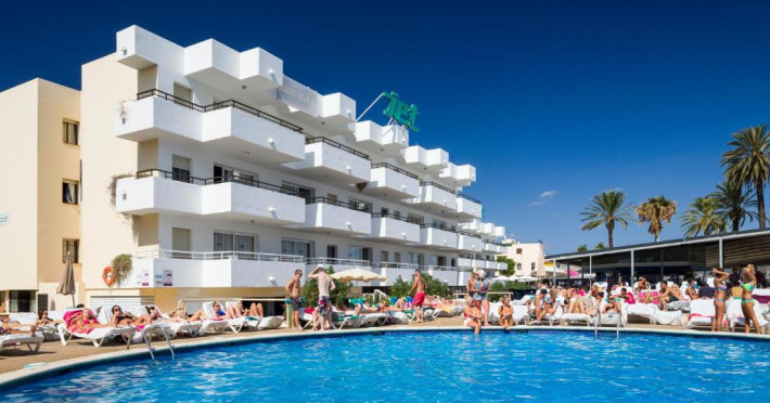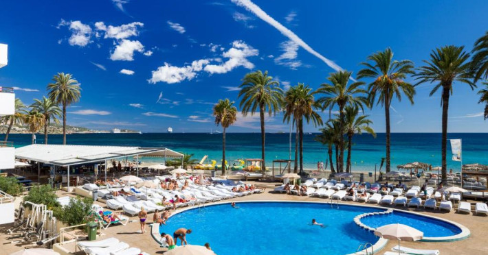 Apartamentos Jet Ibiza oferă 2 piscine cu terase la soare, inclusiv celebrele petreceri la piscină de la Tiare Beach Bar.