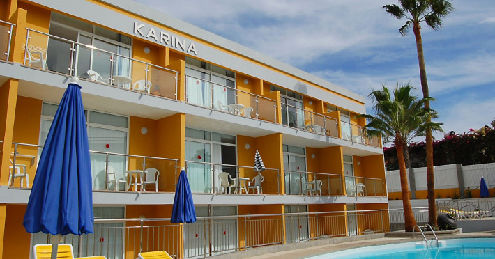 Apartamentos Karina is located in central Playa del Inglés, just 350 m from the beach. It offers an outdoor pool and modern, air-conditioned apartments with a private balcony. The Karina apartments f...Apartamentos Karina is located in central Playa del Inglés, just 350 m from the beach. It offers an outdoor pool and modern, air-conditioned apartments with a private balcony. The Karina apartments f...