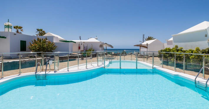 Located in the tourist center of Puerto del Carmen, the three-star-resort is literally one step from the delicious beach of Matagorda, which proudly shows its Blue Flag. The golden-sand beach is bordered by a charming promenade with a wide gastronomy and shopping offer. Closing your eyes and breathing the sea breeze, opening them and admiring the immense blue at your feet is quite an experience. Our complex has 133 completely independent apartments divided in seven sectors with their own pool.