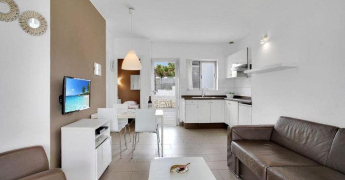Facilități confortabile: Fiecare apartament are baie privată, terasă, chicinetă și vedere la grădină sau la piscină. Facilitățile suplimentare includ o canapea extensibilă, televizor și pardoseli cu gresie.
