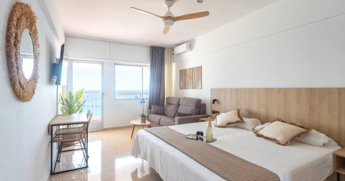 Descriere: Apartamentos Mirador este o locatie situata la aproximativ 100 de m de Plaja Poniente si ofera apartamente bine echipate, cu terasa si vedere la mare.Dotari apartament: chicineta utilata cu frigider, plita electrica, cuptor cu microunde, aparat de cafea/ceai, living cu TV cu ecran plat, baie cu dus, articole de toaleta gratuite, wifi, aer conditionat.