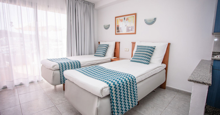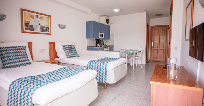 About 700 m from a beach lies the apart hotel Apartamentos Servatur Montebello. The city centre is around 500 m away. The nearest shops you can reach within around 700 m. In the surrounding a disco (approx. 700 m away) and a leisure park (approx. 15 km) offer entertainment during the best time of the year. The hotel is equipped with a reception, a supermarket as well as parking spaces. At the pool, deck chairs and parasols are available for free. Furthermore, you can relax outdoors on the sun terrace and in a garden. To clean your clothes there is a laundry service (extra fee). If you want to explore the holiday region, you can use the car rental service close to the hotel. Distances- Airport: approx. 45 km
