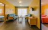 Dotari apartamente: Apartamentele sunt echipate cu: bucatarie utilata, living cu canapea, baie privata cu uscator de par, wifi, aer conditionat, telefon, balcon, televizor, seif cu plata.