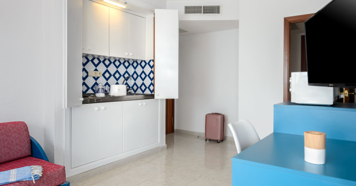 The apart Aparthotel Vibra Jabeque Soul is located around 5 km from the city centre. The hotel is equipped with a 24h reception, Wi-Fi, 2 lifts, showers and changing rooms, parking spaces (for a fee) as well as a TV lounge. Outside there is a children's pool with a non-swimming area, where you can rent pool towels for a fee and sun loungers are available for free. For very young guests, cots can also be provided. You can store your luggage in the hotel's storage room. There is also a laundry and ironing service available at an additional cost to customers. If necessary, you can contact the medical centre (for a fee). Guests at the accommodation can get a wake-up call from the hotel personnel. If you want to explore the holiday region, you can use the car and motorbike rental service close to the hotel (extra fee). At the reception, tickets are offered for excursions in the area. American Express, Euro/Master Card and Visa are accepted as means of payment. Due to its barrier-free facilities , such as barrier-free entrances and a wheelchair accessible lift, the hotel is also suitable for wheelchair users. Catering For the meals, there are a buffet restaurant and the pool bar. Distances