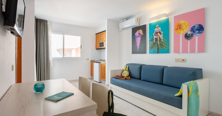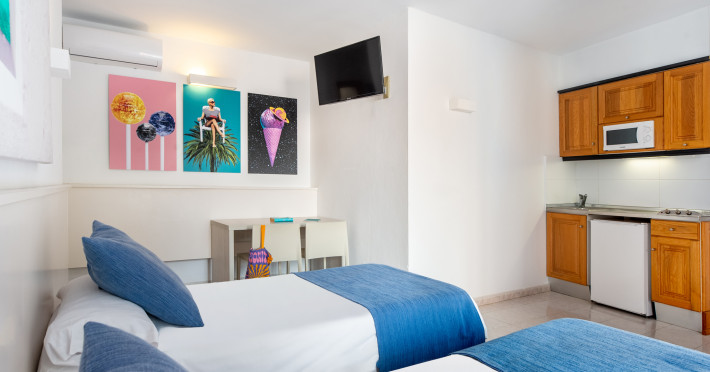 The aparthotel Apartamentos Vibra Panoramic is located approximately 300 m from a beach. The hotel is equipped with a 24h reception, Wi-Fi, a lift as well as parking spaces (for a fee). In the outdoor area of the property you will find a pool that is open seasonally, where sun loungers are available for free. For children there is also a children's pool. You can store your luggage in the hotel's storage room. There is also a laundry service. Ironing equipment can be borrowed at the hotel. Guests at the accommodation can get a wake-up call from the hotel personnel. If you want to explore the holiday region, you can use the car and motorbike rental service close to the hotel (extra fee). At the reception, tickets are offered for excursions in the area. American Express, Euro/Master Card and Visa are accepted as means of payment. Due to its barrier-free facilities , such as barrier-free entrances, the hotel is also suitable for wheelchair users. Catering Breakfast is offered from the buffet. For the meals, there are a buffet restaurant (gluten-free dishes) and the pool bar. Distances- Airport: approximately at 7 km