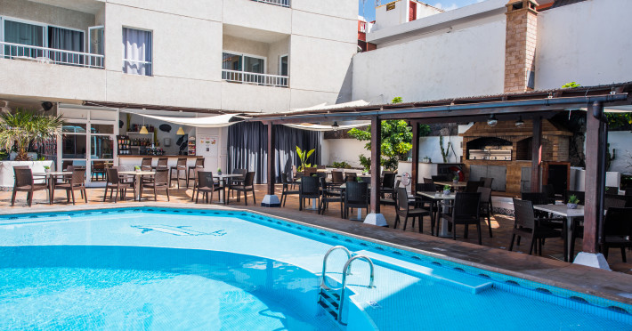 The aparthotel Apartamentos Vigilia Park is located approximately 1 km from a beach. The city centre is also just a few steps away. A supermarket is around 100 m away. The hotel is equipped with a 24h reception, a shop, a hairdresser, a jacuzzi as well as a TV lounge. In the outdoor area you will find a pool (open all year), where sun loungers and sun umbrellas are available for free. There is also a children's pool. Furthermore, you can relax outdoors on the sun terrace. If necessary, you can contact the medical centre (for a fee). For conventions and other business meetings, the hotel offers a conference area. If you want to explore the holiday region, you can use the car rental service close to the hotel. Catering Breakfast is offered from the buffet. Enjoy your lunch from the buffet or à la carte. Dinner is served à la carte. For the meals, there are a restaurant and a bar. Distances