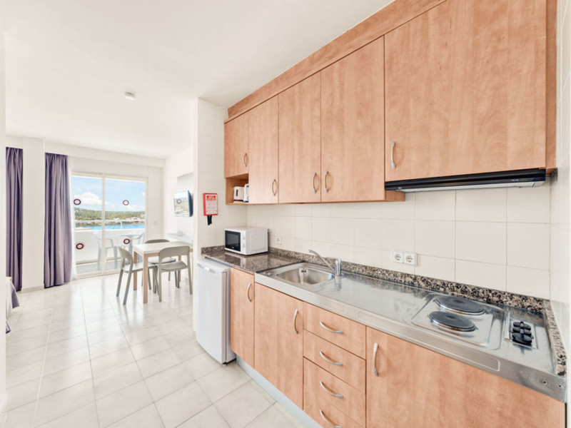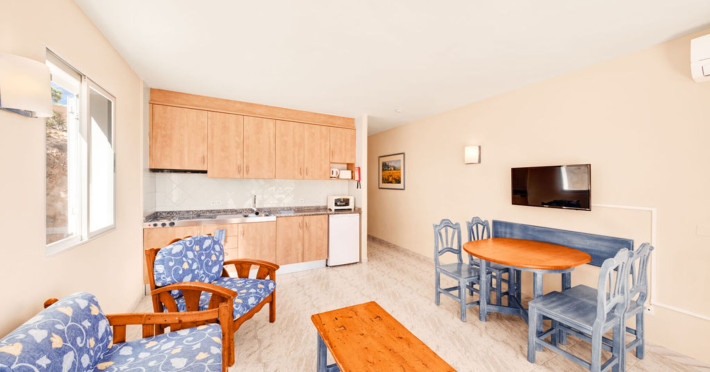The apart hotel APARTAMENTOS VISTA CLUB is located approximately 300 m from a public sandy/rocky/stone beach. The nearest restaurants and bars can be found within 100 m. The city centre is only around 200 m away. A supermarket and other shops you also reach after approximately 100 m. There is a shuttle between the hotel and the airport (for a fee). Nearby there is a disco which offers entertainment in high season. The beach is patrolled by a lifeguard and awarded a blue flag, pets are allowed. Here, there are cushions for a fee available. Cold drinks are served at the bar on the beach. There is also a promenade here where you can go for a stroll. To reach the beach a shuttle is provided. The air-conditioned, GPS-verified hotel has a 24h reception (check-in is possible around the clock), a lobby, Wi-Fi, an internet corner, a lift, showers and changing rooms, a first aid kit as well as a TV lounge with satellite TV. In the outdoor area you will find a garden as well as a salt water pool that is open seasonally, where sun loungers and sun umbrellas are available for free. For children there is also a separate children's pool. Furthermore, outside you can find a sun terrace. You can store your valuables in the safe, and your luggage in the hotel`s storage room. In addition, the hotel APARTAMENTOS VISTA CLUB is video-monitored 24h a day. For very young guests, kid`s chairs, highchairs and cots can be provided. For the smallest children prams can be rented in the hotel. There is also an ironing service. For your comfort there is a concierge service. If necessary, you can contact the medical centre at any time. The energy supply is 220 and 240 Volts. If you want to explore the holiday region, you can use the car and motorbike rental service close to the hotel. At the reception, tickets are offered for excursions in the area. For guests on their honeymoon, the hotel has special offers such as champagne or sparkling wine in the room. In your hotel, a lot of focus is placed on sustainability. This includes a central room air-conditioning and environmentally-friendly cleaning. The hotel requires that all guests pay a deposit upon arrival. Euro/Master Card is accepted as means of payment. Catering As catering services the hotel offers self-catering. Breakfast is offered continental (extras on request). Enjoy your lunch as a set meal or à la carte. For the meals, there are a restaurant with terrace and the cafeteria as well as the pool bar. Distances- Nearest town: approx. 20 km