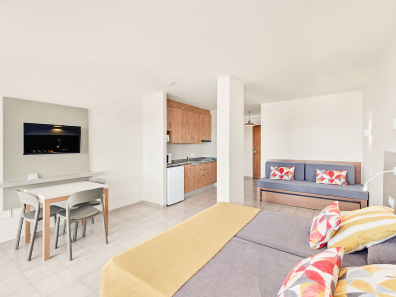 The apart hotel APARTAMENTOS VISTA CLUB is located approximately 300 m from a public sandy/rocky/stone beach. The nearest restaurants and bars can be found within 100 m. The city centre is only around 200 m away. A supermarket and other shops you also reach after approximately 100 m. There is a shuttle between the hotel and the airport (for a fee). Nearby there is a disco which offers entertainment in high season. The beach is patrolled by a lifeguard and awarded a blue flag, pets are allowed. Here, there are cushions for a fee available. Cold drinks are served at the bar on the beach. There is also a promenade here where you can go for a stroll. To reach the beach a shuttle is provided. The air-conditioned, GPS-verified hotel has a 24h reception (check-in is possible around the clock), a lobby, Wi-Fi, an internet corner, a lift, showers and changing rooms, a first aid kit as well as a TV lounge with satellite TV. In the outdoor area you will find a garden as well as a salt water pool that is open seasonally, where sun loungers and sun umbrellas are available for free. For children there is also a separate children's pool. Furthermore, outside you can find a sun terrace. You can store your valuables in the safe, and your luggage in the hotel`s storage room. In addition, the hotel APARTAMENTOS VISTA CLUB is video-monitored 24h a day. For very young guests, kid`s chairs, highchairs and cots can be provided. For the smallest children prams can be rented in the hotel. There is also an ironing service. For your comfort there is a concierge service. If necessary, you can contact the medical centre at any time. The energy supply is 220 and 240 Volts. If you want to explore the holiday region, you can use the car and motorbike rental service close to the hotel. At the reception, tickets are offered for excursions in the area. For guests on their honeymoon, the hotel has special offers such as champagne or sparkling wine in the room. In your hotel, a lot of focus is placed on sustainability. This includes a central room air-conditioning and environmentally-friendly cleaning. The hotel requires that all guests pay a deposit upon arrival. Euro/Master Card is accepted as means of payment. Catering As catering services the hotel offers self-catering. Breakfast is offered continental (extras on request). Enjoy your lunch as a set meal or à la carte. For the meals, there are a restaurant with terrace and the cafeteria as well as the pool bar. Distances