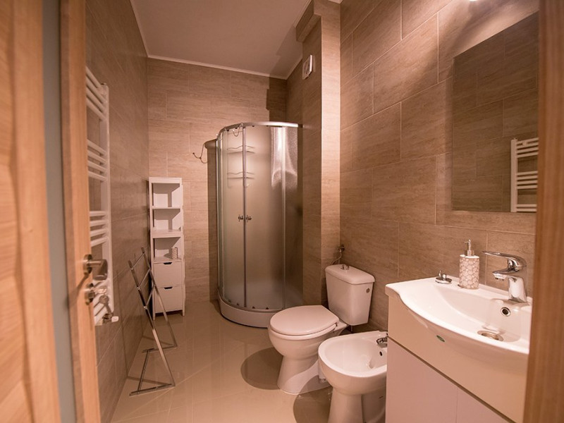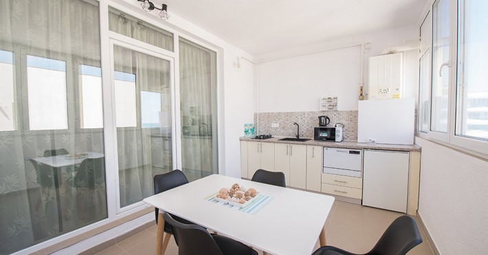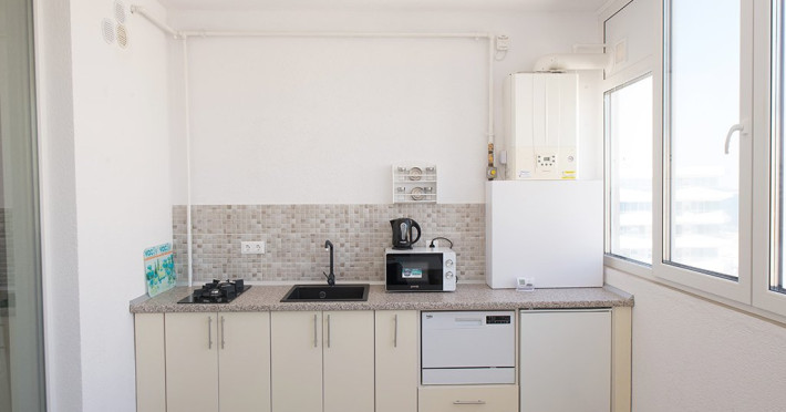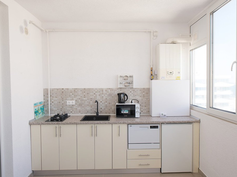 Bucataria este complet utilata. Veti avea la dispozitie o plita si un cuptor cu microunde, cafetiera si frigider.