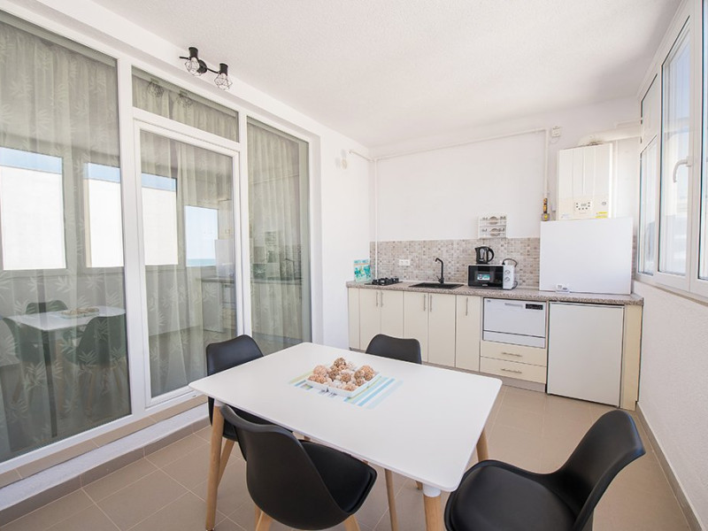 Studio situat in Mamaia Nord, pe strada D8, nr. 3 la etajul 5. Studio-ul este situat la doar 20 de metri distanta de plaja Signature.Studio-ul este perfect pentru o vacanta relaxanta in familie, avand capacitatea de a gazdui 2 adulti si 2 copii. Pentru a va asigura acces facil la etajul 5, cladirea este dotata cu un lift modern.