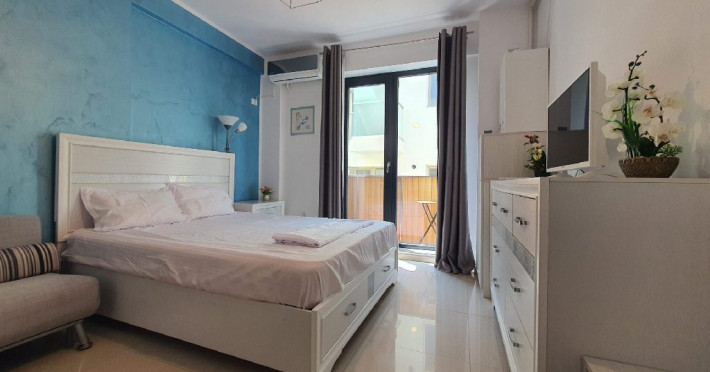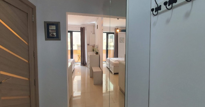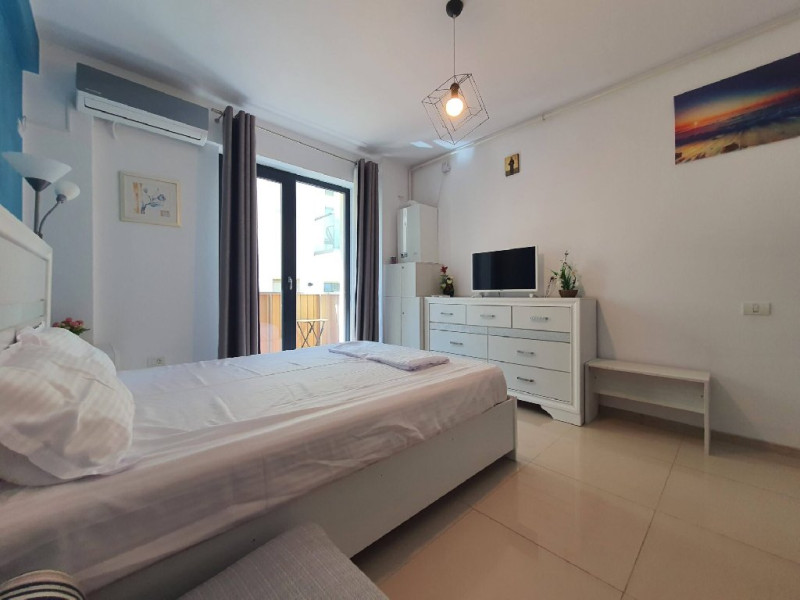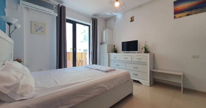 Garsoniera dispune si de un balcon stil logie, unde puteti savura momente relaxante. Aceasta garsoniera este o alegere perfecta pentru un sejur relaxant pe litoral.