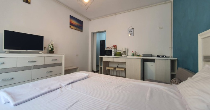 Va prezentam o garsoniera in Building Stefan, situata la doar 50 de metri de plaja! Aceasta locatie este in apropierea plajei Mackerel si este potrivita pentru o vacanta relaxanta la mare. Garsoniera este compusa dintr-o camera si poate gazdui confortabil 2 adulti si 1 copil. Locurile de parcare sunt disponibile in limita disponibilitatii.