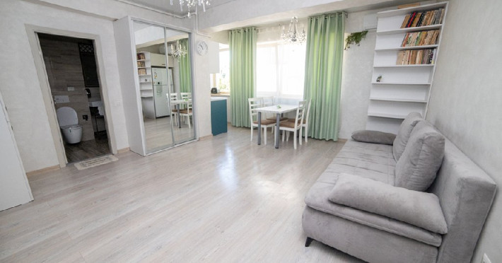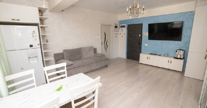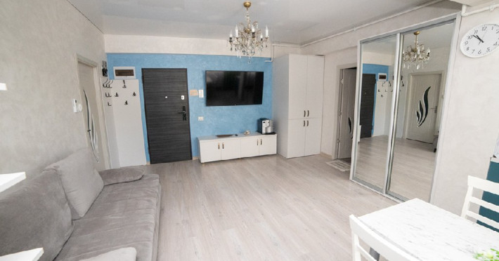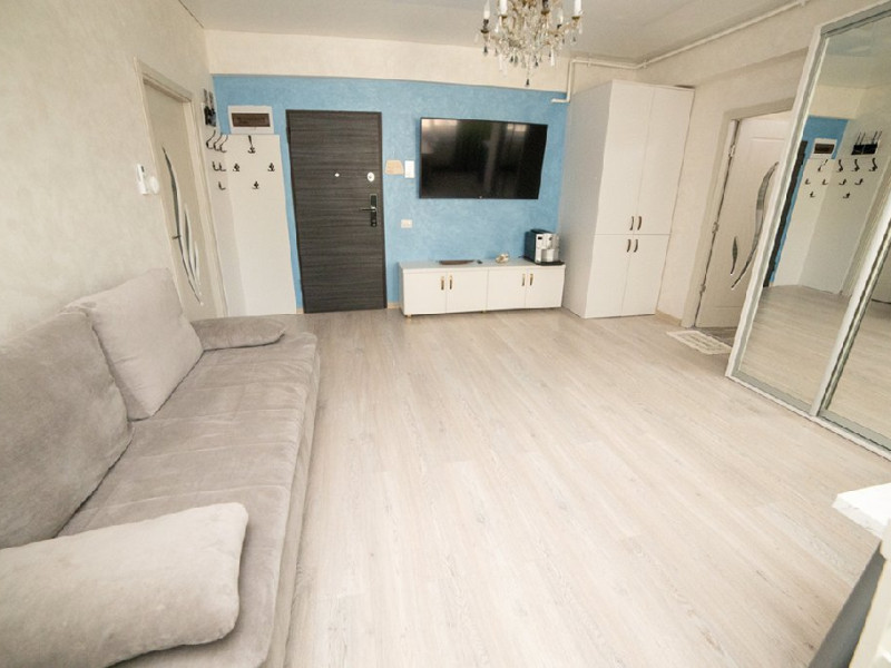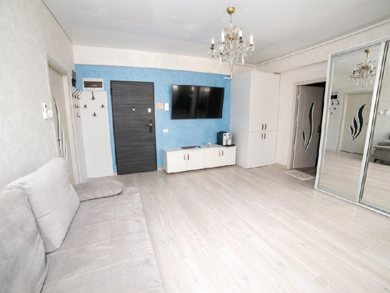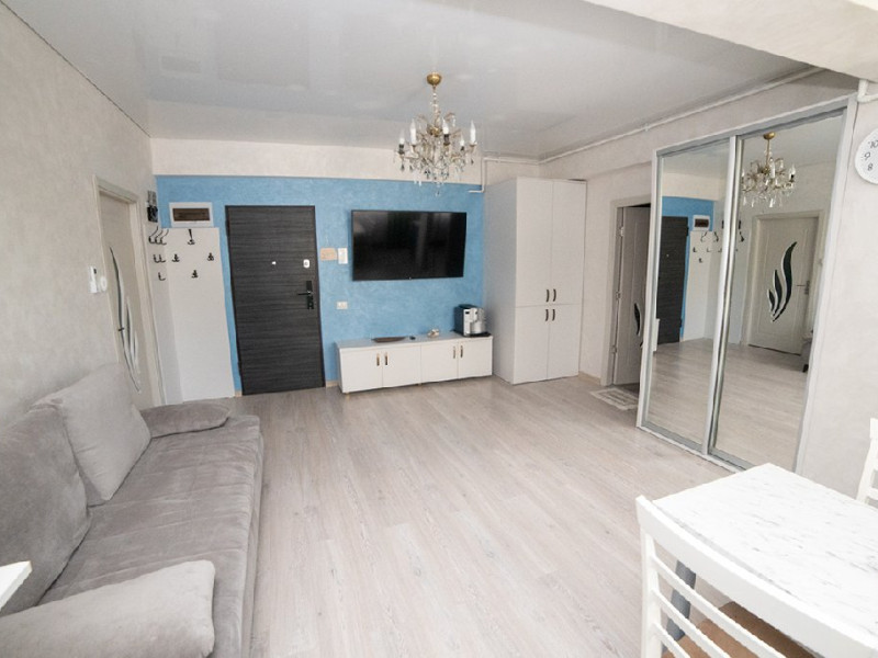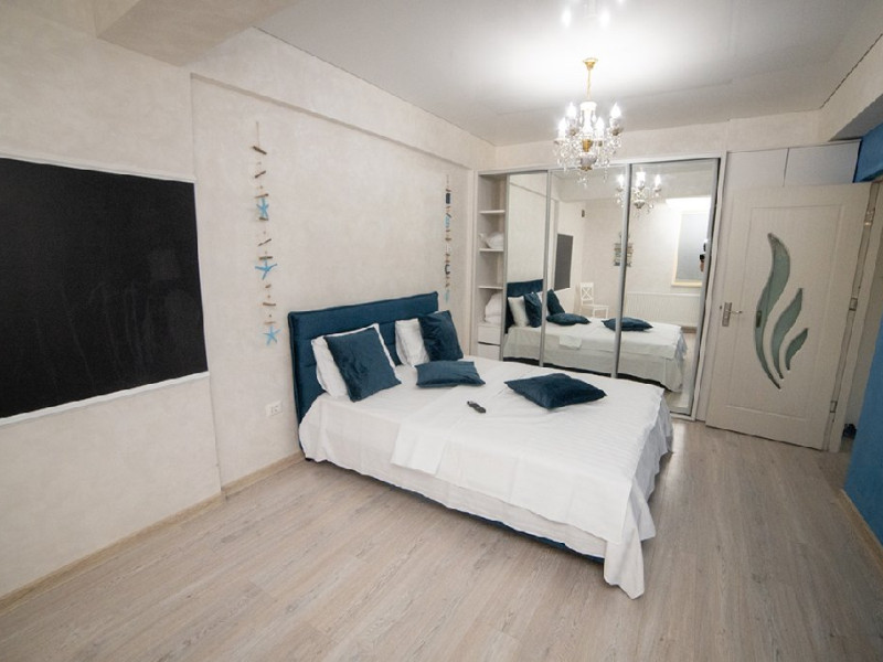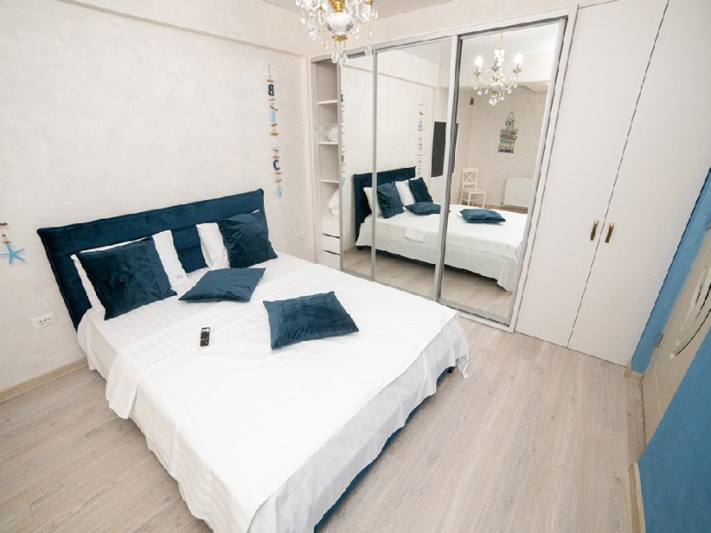 Mobilat si utilat modern, apartamentul dispune de un living spatios dotat cu o canapea extensibila, oferindu-va un loc confortabil pentru relaxare si socializare in timpul sejurului. Dormitorul este echipat cu un pat matrimonial si un dressing, asigurandu-va un somn odihnitor si spatiu generos pentru depozitarea obiectelor personale.