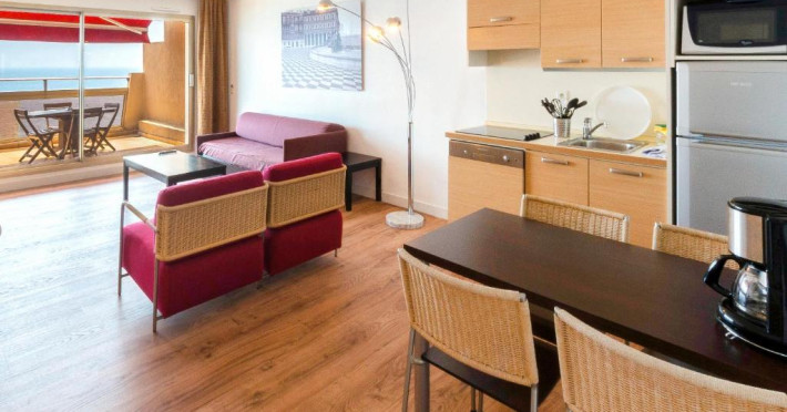 Aparthotel Adagio Nice Promenade des Anglais se află in Nisa, pe Promenade des Anglais. Acest hotel de apartamente situat pe plajă oferă unități de cazare cu dotări ecologice, aer condiționat, WiFi gratuit și vedere la mare sau oraș.