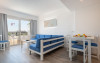 The studios are a single spacecomprising a bedroom for two and a dining area with a sofa bed. The apartmentshave one bedroom for two, a living-dining room with two sofa beds. Both have aprivate terrace, a bathroom with a shower, and a fully equipped kitchen. A TV,air conditioning, heating, a safe (for a fee), and free Wi-Fi are available.