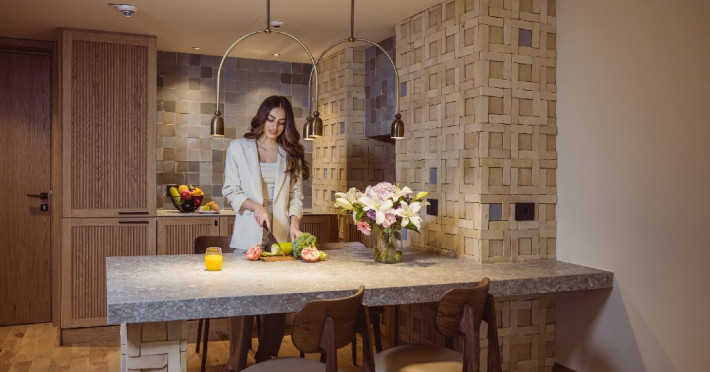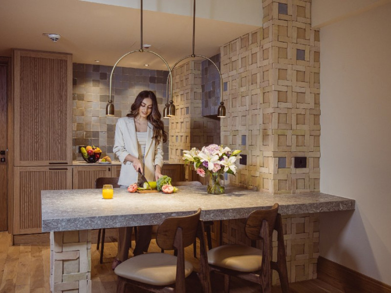 Fiecare apartament include o zona de luat masa, o canapea confortabila, o bucatarie complet utilata si un dormitor spatios cu baie proprie, toate concepute pentru a va face sa va simtiti ca acasa. Paturile exceptionale si interioarele bine gandite creeaza o atmosfera luxurianta, dar relaxata.