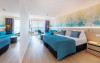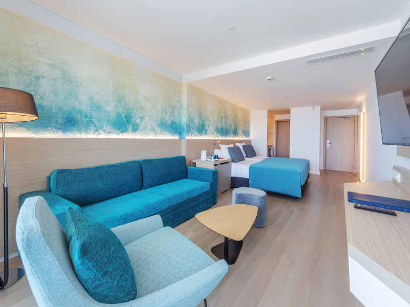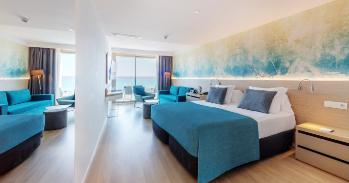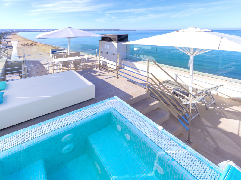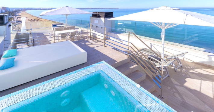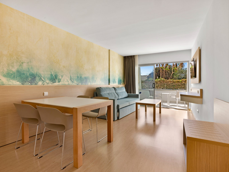 Just a few meters away from a sandy beach is located the aparthotel Aparthotel Fontanellas Playa. The nearest restaurants and bars can be reached in a few minutes on foot. The old town is around 12 km away. You can find a range of shops and a supermarket directly on your doorstep. Nearby there is a disco which offers entertainment in high season. The beach is patrolled by a lifeguard. Here, there are beach towels available. Cold drinks are served at the beach bar. There is a promenade where you can take leisurely walks. The air-conditioned hotel has a 24h reception (check-in is possible around the clock), a lobby bar, Wi-Fi, 6 lifts, a supermarket and other shops, a jacuzzi, showers and changing rooms, a first aid kit as well as a TV lounge with satellite TV. In the outdoor area you will find a heated pool that is open seasonally (open all year), where sun loungers, sun umbrellas and pool towels are available for free. There is also a children's pool. Furthermore, outside you can find a sun terrace. Inside the hotel you can use a heated indoor pool. You can store your valuables in the safe, and your luggage in the hotel`s storage room. For your entertainment, the hotel offers a library/reading room. For very young guests, kid`s chairs, highchairs and cots can be provided. For the smallest children prams can be rented in the hotel. There is also a laundry service available at an additional cost to customers as well as an ironing service. For your comfort there is a concierge service. If necessary, you can contact the medical centre at any time. Guests at the accommodation can get a wake-up call from the hotel personnel. For conventions and other business meetings, the hotel offers EXTRA_FEE conference rooms with a total of 22 seats, tables, printer as well as overhead projector. If you want to explore the holiday region, you can use the car and motorbike rental service close to the hotel (extra fee). In addition, the hotel sells tickets for excursions. In your hotel, a lot of focus is placed on sustainability. This includes the hotel`s own recycling bins and organic food and ecological meals. That is why the hotel Aparthotel Fontanellas Playa was also awarded a sustainability certificate. Due to its barrier-free facilities , such as barrier-free entrances, wheelchair accessible rooms and wheelchair-accessible bathrooms, the hotel is also suitable for wheelchair users. Catering As catering services the hotel offers half board, breakfast only and self-catering. Breakfast is offered from the buffet (extras on request). Enjoy your lunch à la carte. Dinner is also served as a buffet. For the meals, there are a buffet restaurant with terrace (calorie-reduced, gluten-free and vegetarian dishes) and 2 bars, the cafeteria as well as the pool bar. Appropriate clothing is required for lunch and dinner. Distances- Nearest town: approximately at 12 km