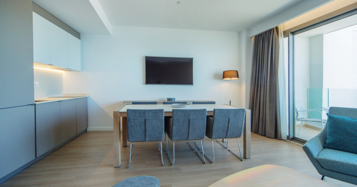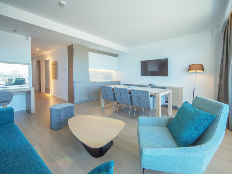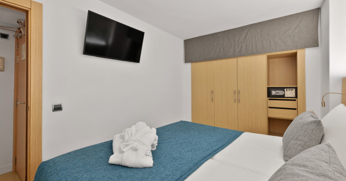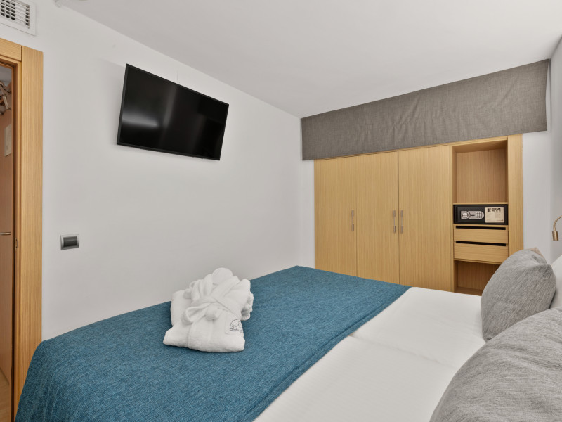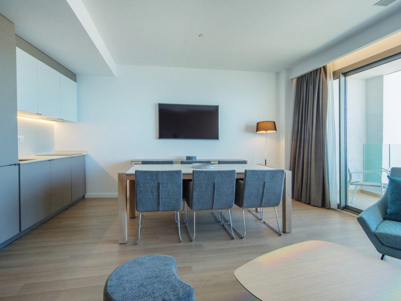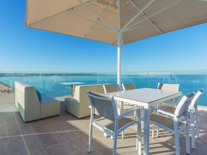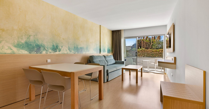 Just a few meters away from a sandy beach is located the aparthotel Aparthotel Fontanellas Playa. The nearest restaurants and bars can be reached in a few minutes on foot. The old town is around 12 km away. You can find a range of shops and a supermarket directly on your doorstep. Nearby there is a disco which offers entertainment in high season. The beach is patrolled by a lifeguard. Here, there are beach towels available. Cold drinks are served at the beach bar. There is a promenade where you can take leisurely walks. The air-conditioned hotel has a 24h reception (check-in is possible around the clock), a lobby bar, Wi-Fi, 6 lifts, a supermarket and other shops, a jacuzzi, showers and changing rooms, a first aid kit as well as a TV lounge with satellite TV. In the outdoor area you will find a heated pool that is open seasonally (open all year), where sun loungers, sun umbrellas and pool towels are available for free. There is also a children's pool. Furthermore, outside you can find a sun terrace. Inside the hotel you can use a heated indoor pool. You can store your valuables in the safe, and your luggage in the hotel`s storage room. For your entertainment, the hotel offers a library/reading room. For very young guests, kid`s chairs, highchairs and cots can be provided. For the smallest children prams can be rented in the hotel. There is also a laundry service available at an additional cost to customers as well as an ironing service. For your comfort there is a concierge service. If necessary, you can contact the medical centre at any time. Guests at the accommodation can get a wake-up call from the hotel personnel. For conventions and other business meetings, the hotel offers EXTRA_FEE conference rooms with a total of 22 seats, tables, printer as well as overhead projector. If you want to explore the holiday region, you can use the car and motorbike rental service close to the hotel (extra fee). In addition, the hotel sells tickets for excursions. In your hotel, a lot of focus is placed on sustainability. This includes the hotel`s own recycling bins and organic food and ecological meals. That is why the hotel Aparthotel Fontanellas Playa was also awarded a sustainability certificate. Due to its barrier-free facilities , such as barrier-free entrances, wheelchair accessible rooms and wheelchair-accessible bathrooms, the hotel is also suitable for wheelchair users. Catering As catering services the hotel offers half board, breakfast only and self-catering. Breakfast is offered from the buffet (extras on request). Enjoy your lunch à la carte. Dinner is also served as a buffet. For the meals, there are a buffet restaurant with terrace (calorie-reduced, gluten-free and vegetarian dishes) and 2 bars, the cafeteria as well as the pool bar. Appropriate clothing is required for lunch and dinner. Distances