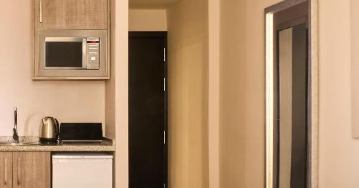 Proprietatea cuprinde un bar care servește gustări și băuturi pană la ora 23:00. De asemenea, la mică distanță pe jos există numeroase restaurante.