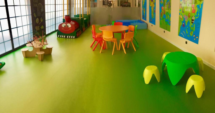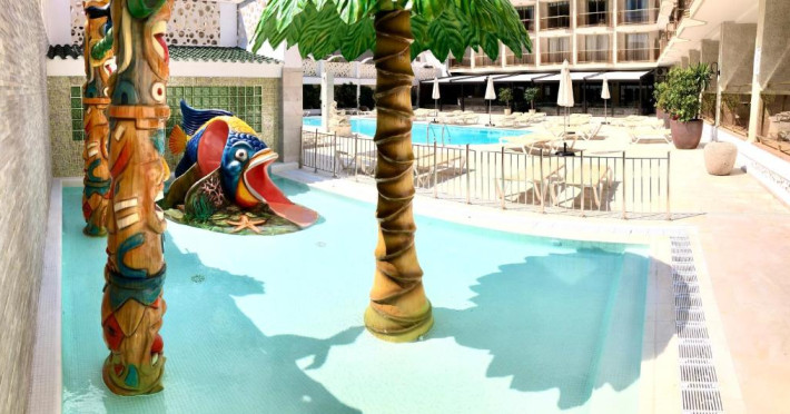 Copiii se pot distra la piscina special amenajată pentru ei.