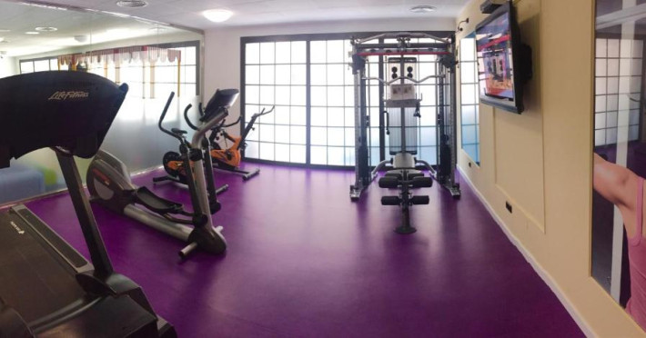O sală de fitness cu echipamente necesare pentru o gamă variată de exerciții fizice este la dispoziția celor interesați.
