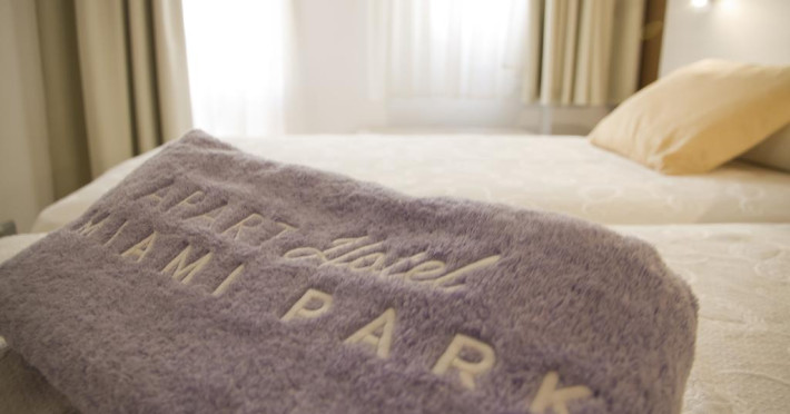 Camerele confortabile de la Aparthotel Miami Park au pardoseală de gresie/ marmură, aer condiționat, Tv cu canale prin satelit și seif. Fiecare cameră dispune de mașină pentru preparare cafea sau ceai și fierbător Oaspeții au acces gratuit la serviciul Wi-fi în camere. Unele camere au balcon cu vedere la piscină. În camere există baie cu cadă și duș ce are în dotare foehn și articole de toaletă gratuite. Fiecare unitate de cazare include o chicinetă utilată cu frigider, plită de gătit și ustensile de bucătărie. De asemenea, sunt disponibile un cuptor cu microunde și o masă unde oaspeții pot mânca. Proprietatea oferă camere pentru familie cu o suprafață mai mare și un număr mai mare de paturi față de cele standard.