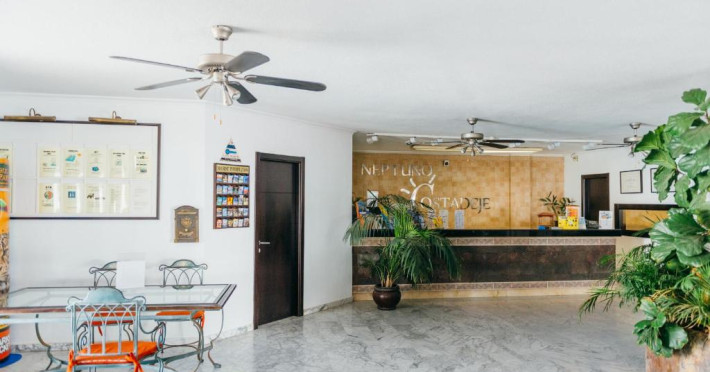Aparthotelul oferă 96 de apartamente și 10 garsoniere pe 2 nivele la care se poate ajunge cu un lift. Recepția este deschisă la orice oră. Clienților hotelului le stau la dispoziție un seif, o sală de jocuri, asistență medicală, un serviciu de spălătorie și o spălătorie de tip self-service. În spațiile comune, conexiunea Wi-Fi le oferă clienților acces (contra cost) la internet. La serviciul de organizare a excursiilor se dă o mână de ajutor la planificarea excursiilor. Există de asemenea și magazine. Locul de cazare are o grădină frumoasă și un loc de joacă. Cei ce călătoresc cu autoturismul propriu îl pot parca contra cost în parcarea aparthotelului. Oferta include un autobuz propriu pentru navetă.
