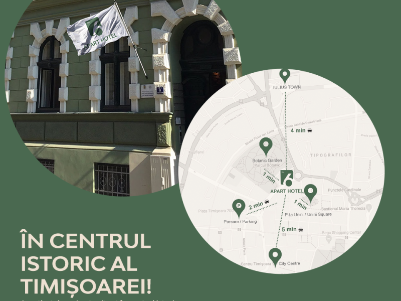 Aparthotel no. 6 este situat in centrul istoric al Timisoarei, zona pietonala, in inima atractiilor turistice si istorice ale orasului. De asemenea, se afla in apropiere de zona de afaceri si de centrul comercial, la doar 200 m de Piata Unirii, la 600 m de Piata Victoriei / Catedrala / Opera Nationala Romana / Muzeul National Banat, la 100 m de Parcul Botanic, la 2 km de Iulius-Mall.