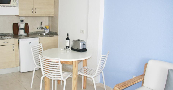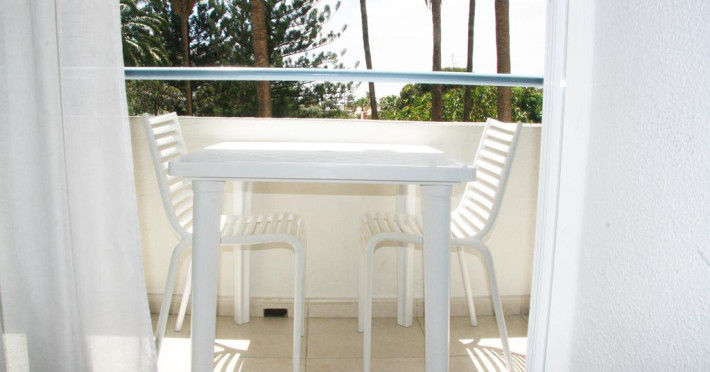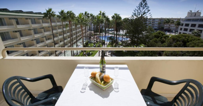 Oaspeții se pot relaxa pe terasa de la Aparthotel Playa Del Sol.