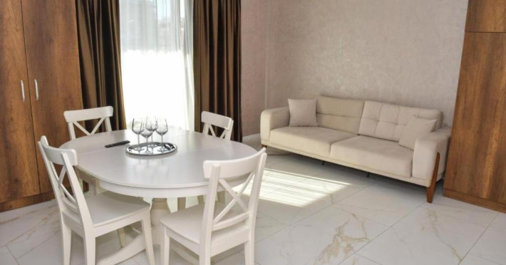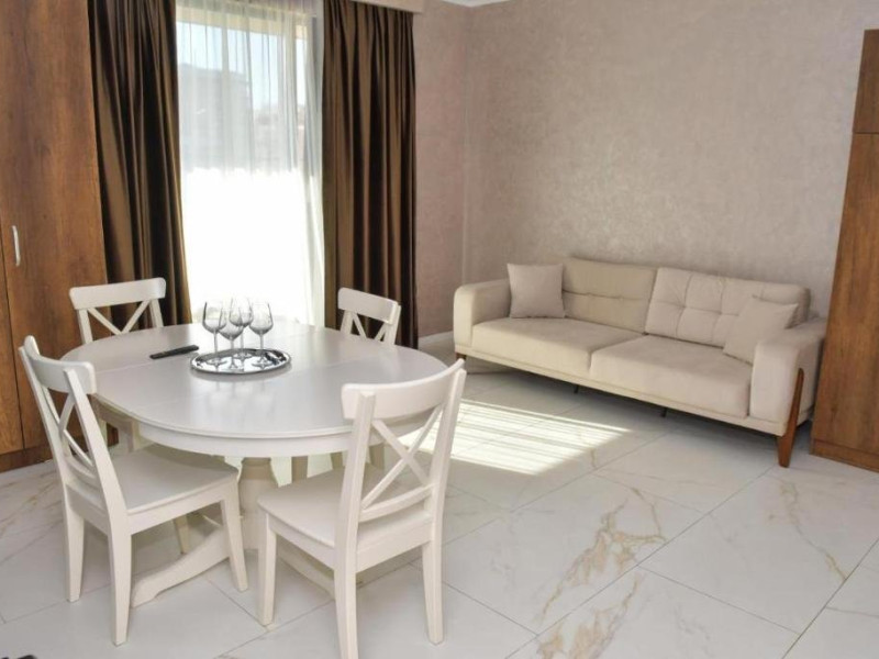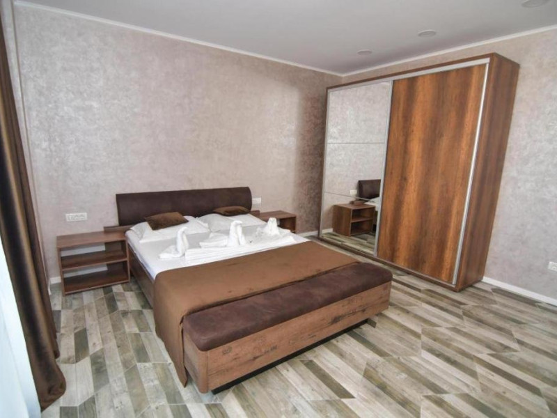 Apartament Deluxe este compus din living cu canapea extensibila si un dormitor cu pat matrimonial, baie cu dus tip walk-in, articole de toaleta gratuite, uscator de par, bucataria complet utilata ce include plita, frigider, cuptor , masina de spalat, aparat de ceai si cafea, balcon mobilat cu vedere la piscin. Suprafata 102 mp. Se pot caza 4 adulti.