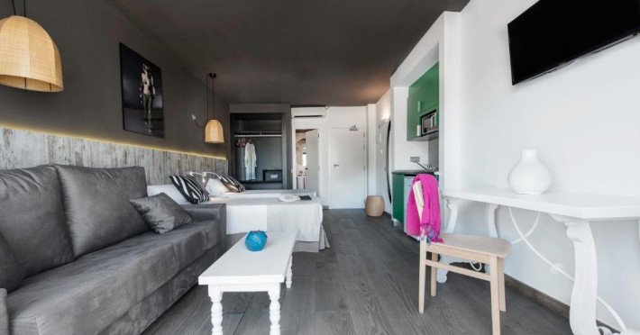 Aparthotel Vibra Mogambo - Adults only este situat in stațiunea animată Playa d'en Bossa din Ibiza, chiar vizavi de plajă. Complexul oferă o zonă in aer liber.