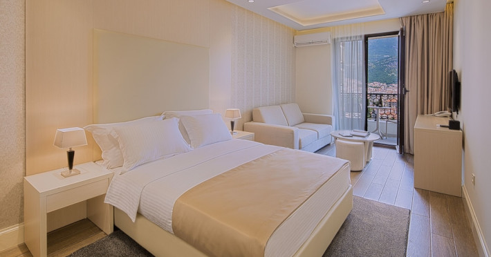 Apartment hotel was built in 2015. There are a total of 18 rooms on the premises.This Aparthotel is a modern, newly built, luxury hotel located at 350 meters from the Old Town of Budva and the sea. This 4-star property is situated in a nice and quiet neighbourhood and yet very close to the ancient walls of Old Town and the main harbour.It offers 8 modern studio apartments, 8 comfortable one-bedroom apartments, and 2 luxury duplex apartments, making the total of 18 units capable of accommodating 50 guests.The interior was uniquely designed using modern pieces of furniture and with a specific goal in mind for our guests to experience the maximum level of comfort. All of the apartments are equipped with a mini bar, safe, satellite TV, and Wi-Fi.Every accommodation unit has a balcony with furniture, breathtaking sea view, view of the Old Town, view of the Sveti Stefan, and the city harbour. Hotel also features a summer garden surrounded by trees and flowers where our guests can find peace and refreshments during hot summer days. In addition, our property offers a restaurant, elevator, parking lot, and rent a car service. Our wellness centre offers a sauna, steam bath, and a gym.Our highly trained staff will provide you with a pleasant stay and an unforgettable experience.Apartment hotel was built in 2015. There are a total of 18 rooms on the premises.This Aparthotel is a modern, newly built, luxury hotel located at 350 meters from the Old Town of Budva and the sea. This 4-star property is situated in a nice and quiet neighbourhood and yet very close to the ancient walls of Old Town and the main harbour.It offers 8 modern studio apartments, 8 comfortable one-bedroom apartments, and 2 luxury duplex apartments, making the total of 18 units capable of accommodating 50 guests.The interior was uniquely designed using modern pieces of furniture and with a specific goal in mind for our guests to experience the maximum level of comfort. All of the apartments are equipped with a mini bar, safe, satellite TV, and Wi-Fi.Every accommodation unit has a balcony with furniture, breathtaking sea view, view of the Old Town, view of the Sveti Stefan, and the city harbour. Hotel also features a summer garden surrounded by trees and flowers where our guests can find peace and refreshments during hot summer days. In addition, our property offers a restaurant, elevator, parking lot, and rent a car service. Our wellness centre offers a sauna, steam bath, and a gym.Our highly trained staff will provide you with a pleasant stay and an unforgettable experience.