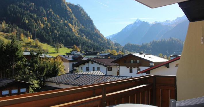 Apartamentele oferă un balcon cu mobilier de patio și vedere panoramică la munții ce inconjoară orașul Kaprun.