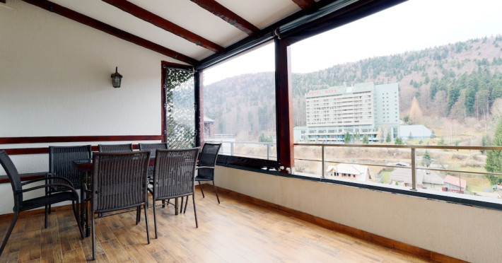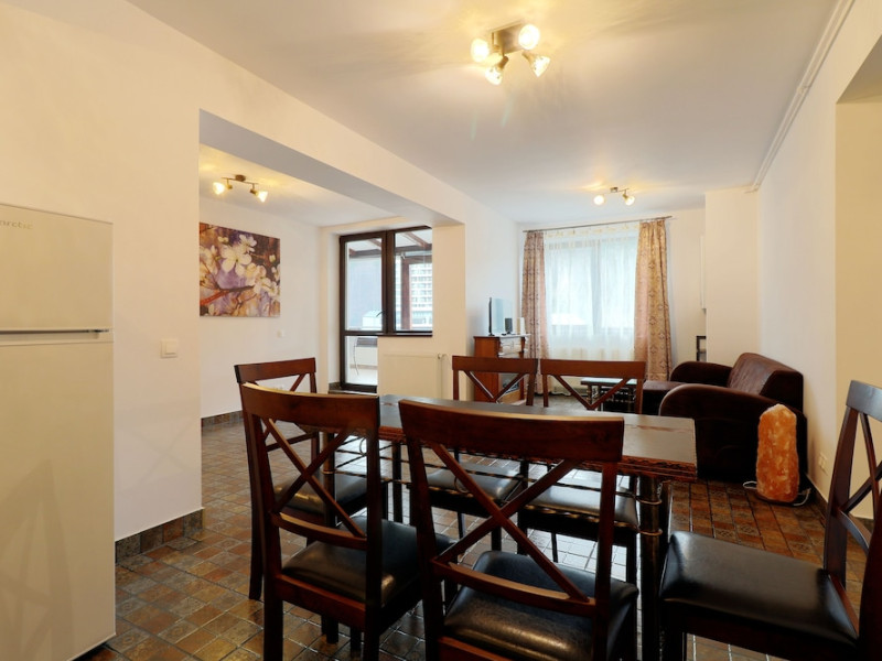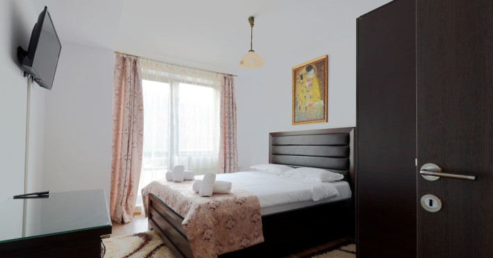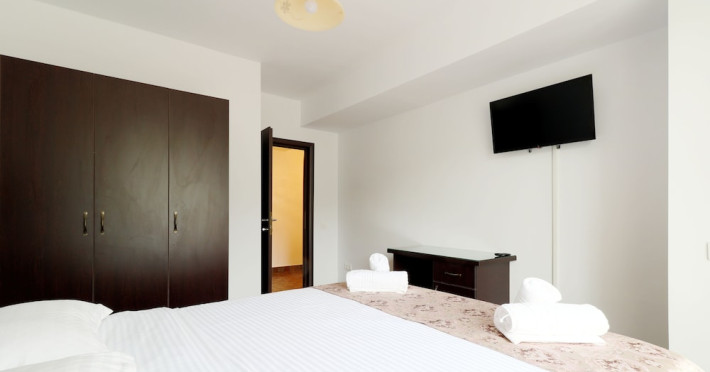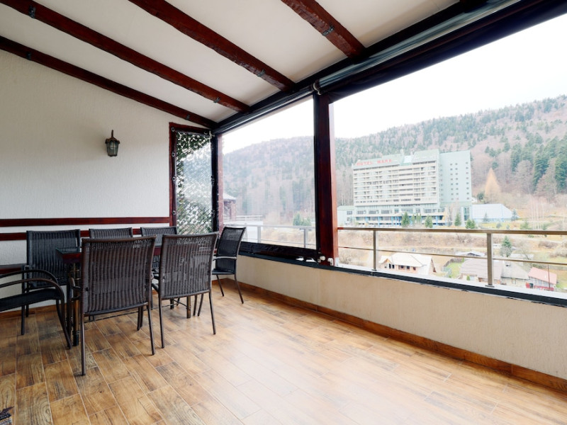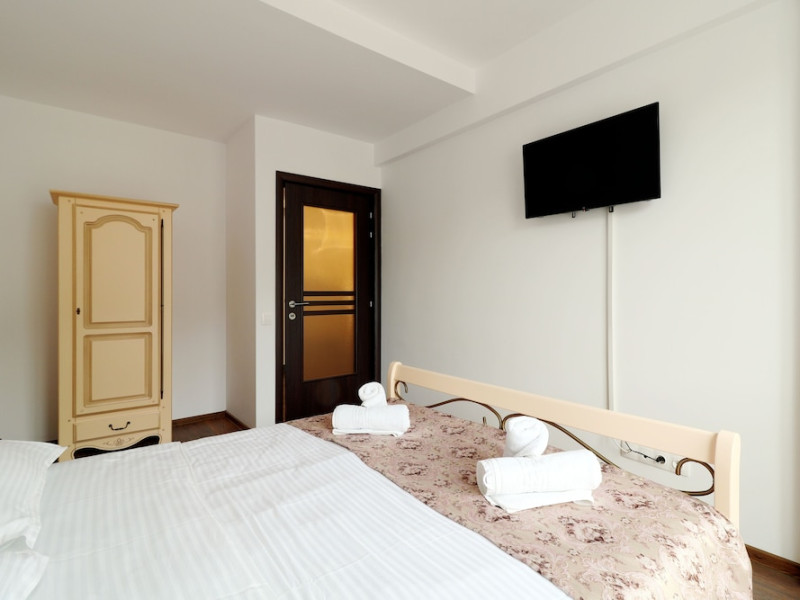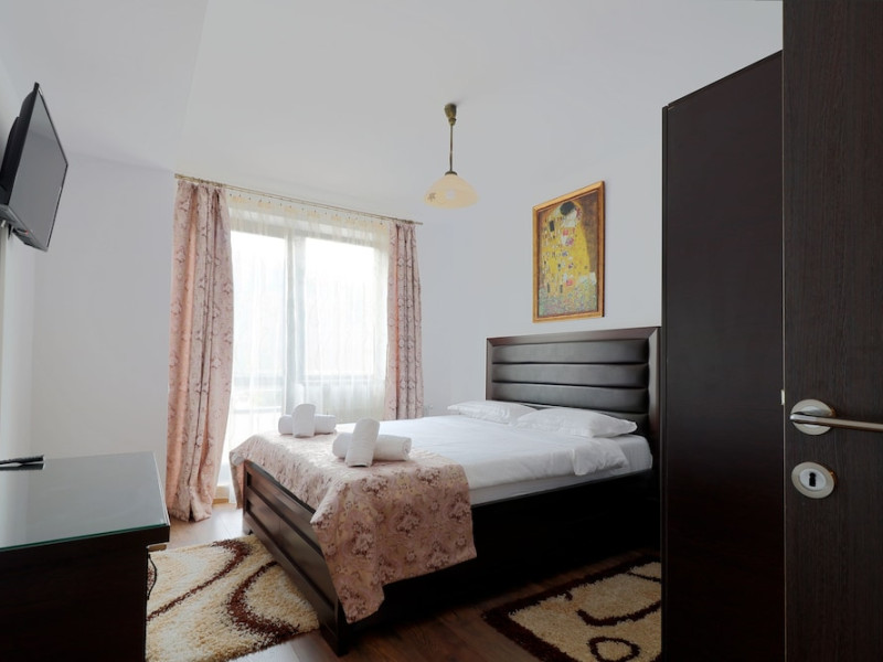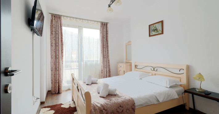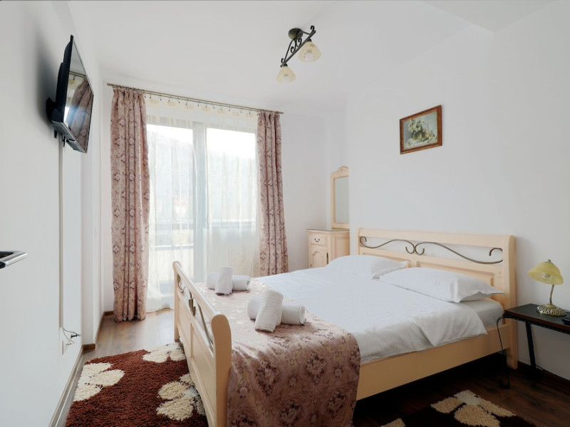 Sofia Apartment is a sustainable apartment in Sinaia, 2.5 miles from Stirbey Castle. This property encourages guests to embrace nature with its eco-friendly arrangements. This property offers access to a balcony, free private parking, and free Wifi. The accommodation features a 24-hour front desk and an elevator for guests. Featuring a terrace and mountain views, the spacious apartment includes 3 bedrooms, a living room, satellite TV, an equipped kitchen, and 2 bathrooms with a shower. Towels and bed linen are available in the apartment. The accommodation is non-smoking. George Enescu Memorial House is 3.8 miles from the apartment, while BraÅov Adventure Park is 27 miles from the property. The nearest airport is Bucharest Henri CoandÄ International Airport, 65 miles from Sofia Apartment.WiFi is available in all areas and is free of charge. Free private parking is available on site (reservation is not needed). Pets are not allowed. Children of all ages are allowed. You havent added any cribs. You havent added any extra beds.Checkin Time: 15:00Checkin End Time: 00:00Checkout End Time: 11:00Hotel important information: In response to the coronavirus (COVID-19), additional safety and sanitation measures are in effect at this property.Datorita dinamicitatii domeniului disponibilitatea ofertelor se modifica de la un moment la altul. De aceea ofertele sunt valabile in limita locurilor disponibile. Agentia nu este responsabila pentru eventualele neconcordante care pot aparea intre informatiile privind tarifele si alte detalii din site si informatiile primite in agentie. In aceste cazuri vor avea prioritate, intotdeauna, informatiile primite in agentie.