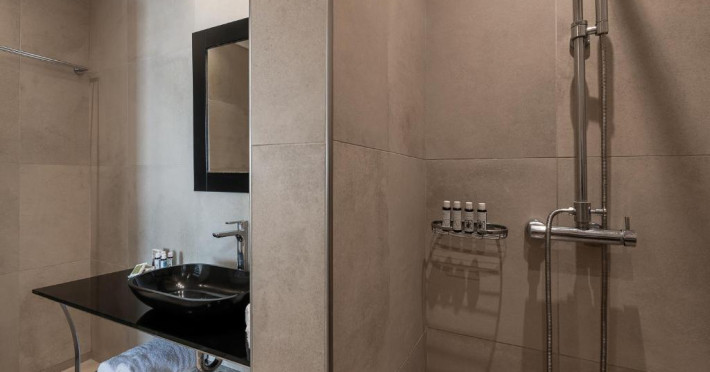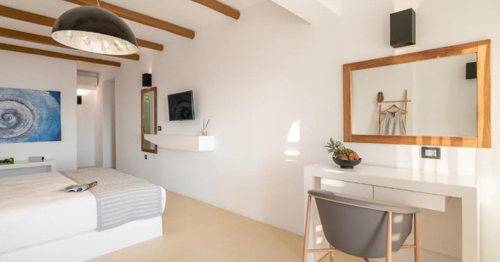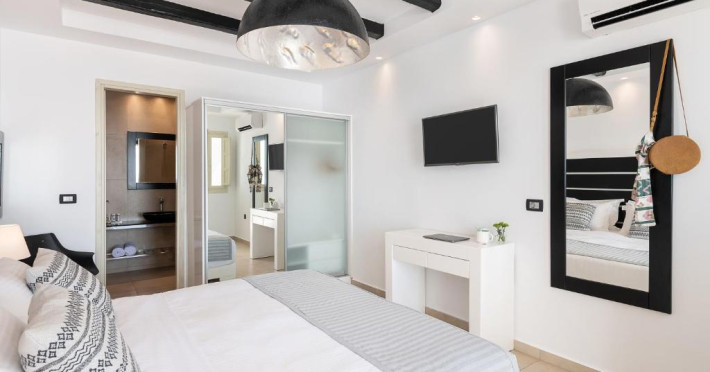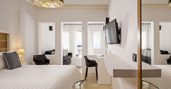 În camere există un aparat de aer condiționat. De la balconul sau de pe terasa care se găsesc în majoritatea camerelor, clienții au vedere spre mare. Camerele au un pat „Queen size” sau o canapea. Sunt disponibile dormitoare separate. De asemenea, sunt disponibile un seif, un minibar și un birou. Echiparea de bază cuprinde de asemenea și un aparat pentru cafea/ceai. În plus, există un telefon, un televizor, un radio și WiFi (gratuit). În cameră se găsesc și papuci de casă. În baia dotată cu un duș și o cadă cu hidromasaj există un uscător de păr. Locul de cazare oferă camere de nefumători.