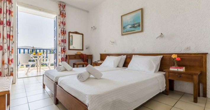 Smart Budget Room: acest tip de camera este la primul etaj al hotelului. Are balcon privat cu vedere partiala la portul Skopelos sau vedere la strada principala.