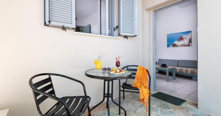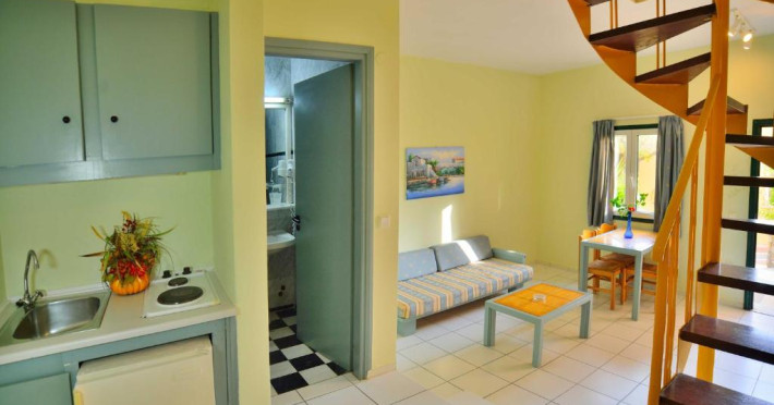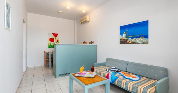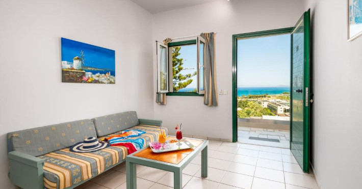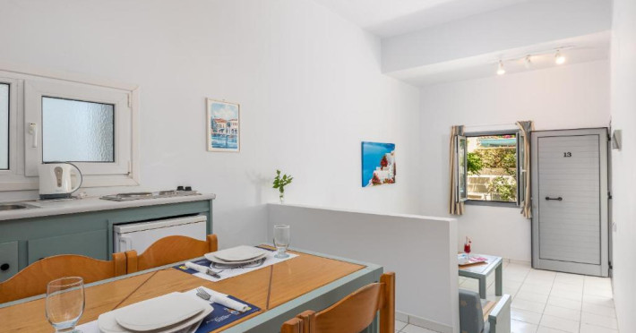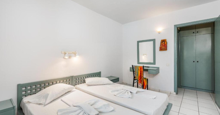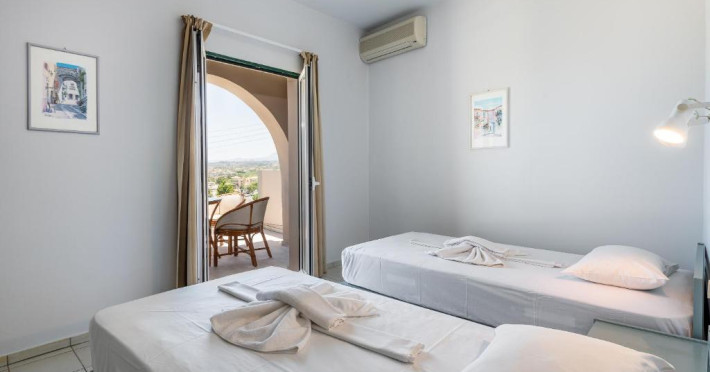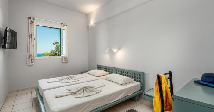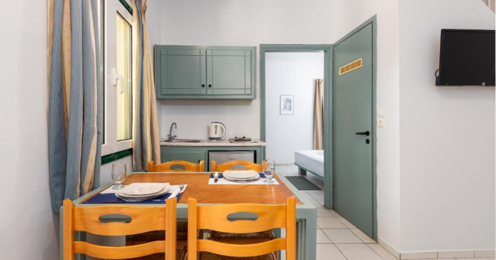 Camerele confortabile de la Aphea Village au pardoseală de gresie/ marmură, aer condiționat, Tv cu canale prin satelit și seif. Fiecare cameră dispune de cană-fierbător. În camere există baie cu cadă sau duș ce are în dotare foehn și articole de toaletă gratuite. Camerele au balcon cu vedere la mare sau la grădină. Oaspeții au acces gratuit la serviciul Wi-fi în camere. Fiecare unitate de cazare include o chicinetă utilată cu frigider, plită de gătit și ustensile de bucătărie. De asemenea, este disponibilă o zonă de luat masa. Proprietatea oferă camere pentru familie cu o suprafață mai mare și un număr mai mare de paturi față de cele standard.