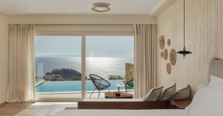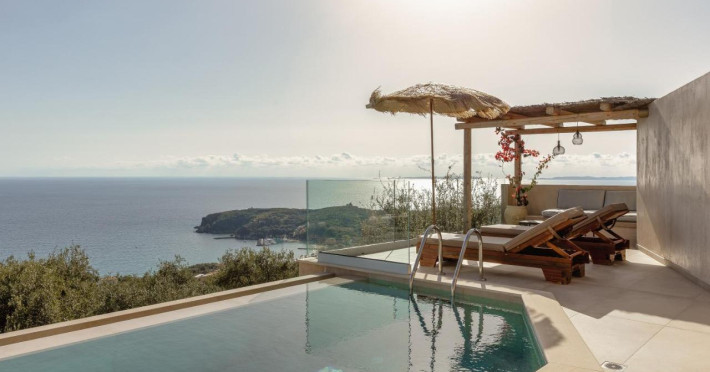 Toate vilele Apollis sunt in sistem self-catering si au bucătărie modernă, zonă de luat masa, balcon, care este un loc ideal pentru oaspeții să se relaxeze în timp ce se bucură de priveliștea pitorească, o piscină în aer liber și o terasă cu șezlonguri unde oaspeții se pot bucura de o plimbare relaxantă prin peisajul amenajat. grădină. Arhitectura traditionala, combinata cu facilitatile oferite in case si pozitia lor privilegiata, creeaza un mediu primitor in care natura se imbina cu albastrul Marii Ionice.Descriere hotel
