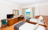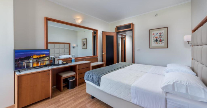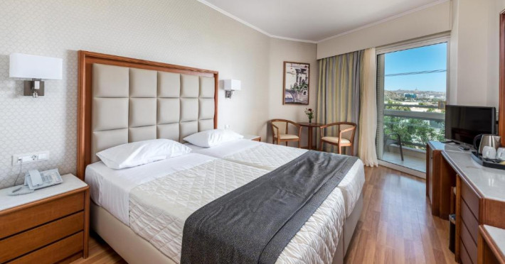 Sunt disponibile 300 camere. Oaspeții au la dispoziție serviciul de room service pentru a servi masa sau diverse băuturi. Camerele luminoase de la Apollo Beach sunt dotate cu parchet, aer condiționat, Tv cu canale prin satelit și seif. Unele camere au balcon cu vedere la mare, unde oaspeții pot admira apusul sau răsăritul soarelui. În camere există baie cu cadă sau duș ce are în dotare foehn și articole de toaletă gratuite. Oaspeții au acces gratuit la serviciul Wi-fi în camere. Curățenia in cameră se face zilnic. Fiecare unitate de cazare are frigider. Proprietatea oferă camere pentru nefumători.