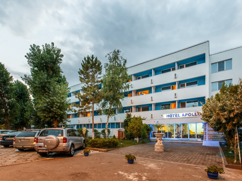 Localizare: Hotelul Apollo este localizat in partea de nord a statiunii, intr-o zona linistita , la doar 70 de metri de singura plaja certificata international Blue Flag din Mamaia. Hotel Apollo isi rasfata oaspetii cu linistea si confortul de care acestia au nevoie pentru un concediu de vis la malul marii.Descriere: Hotel Apollo*** dispune de 114 camere duble amplasate la et. 1, 2 si 3, dintre care 50% sunt orientate spre mare ,,SUNRISEa sunt orientate catre lacul Siutghiol (strada) , ,,SUNSETa. Hotelul a fost renovat si modernizat detinand restaurant ,bar si 2 terase, fiind amplasat pe un teren 6800 mp inconjurat de spatii verzi frumos amenajate si copaci ce umbresc hotelul si parcarea ce asigura 99% din necesar .