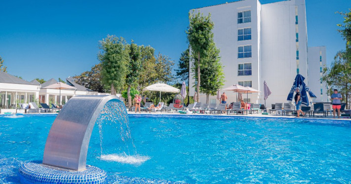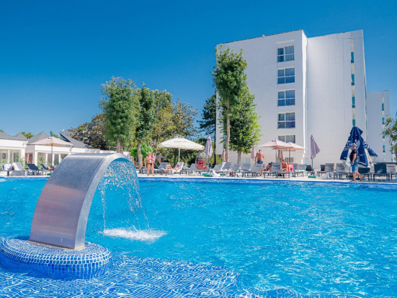 FACILITATI HOTEL: restaurant cu sistem mic dejun (B/B), demipensiune (H/B)- mic dejun si pranz/cina incluse sau pensiune completa (F/B) - mic dejun, pranz si cina incluse, restaurant terasa cu spectacole, pizzerie - cuptor , 1 sala de conferinte, pastrari valori, camera bagaje, acces internet, parcare gratuita (in limita locurilor disponibile). Piscina exterioara acces gratuit pentru clientii hotelului - (loc/sezlong in limita locurilor disponibile) dotata cu gheizer, zona hidromasaj si masaj cervical, unde se pot servi si cocktail-uri. Activitati si loc de joaca pentru copii exterior si interior, cu acces gratuit.Orchestra live, momente comice si de magie.