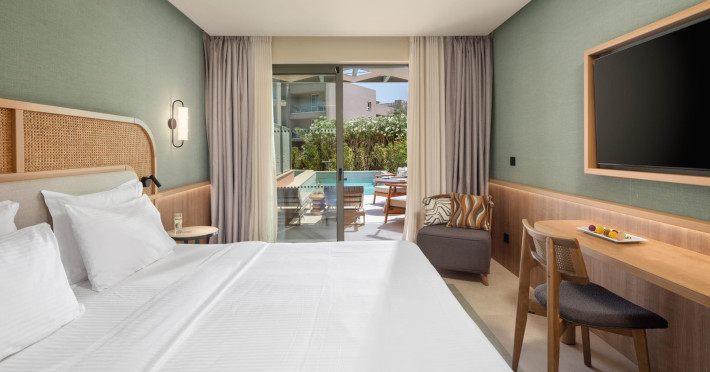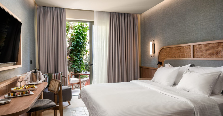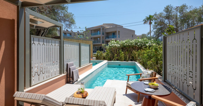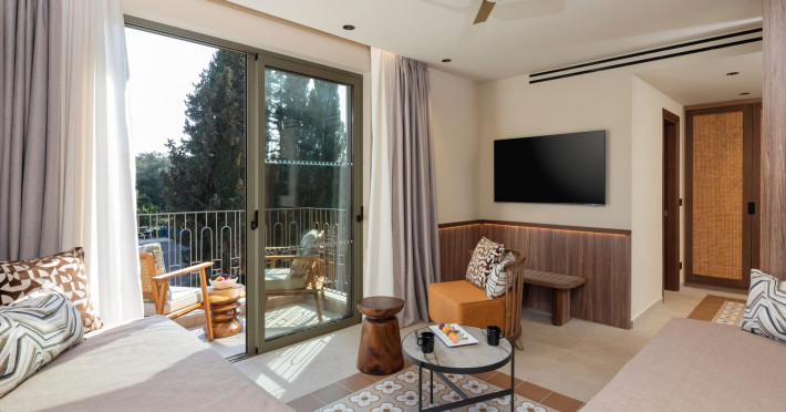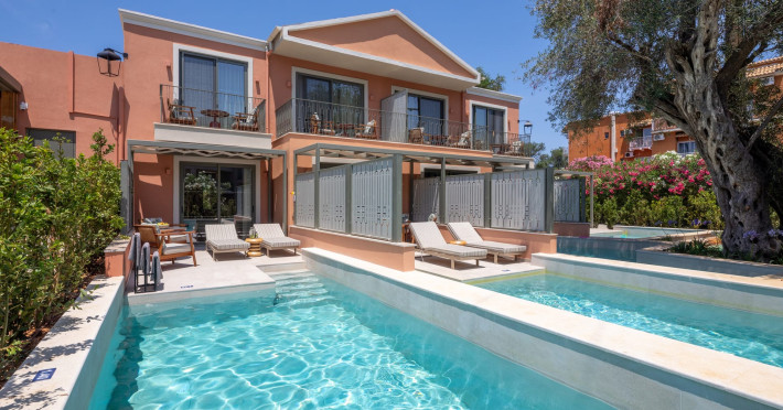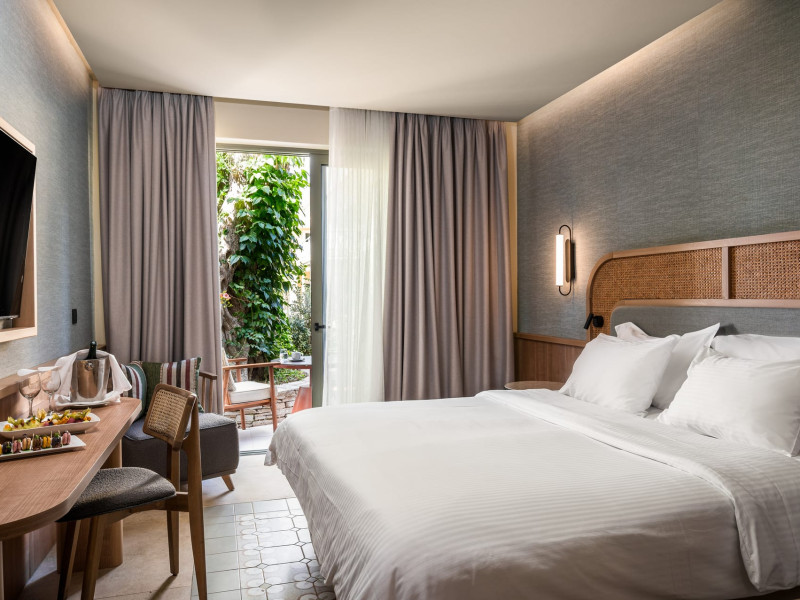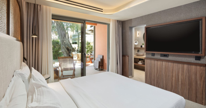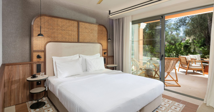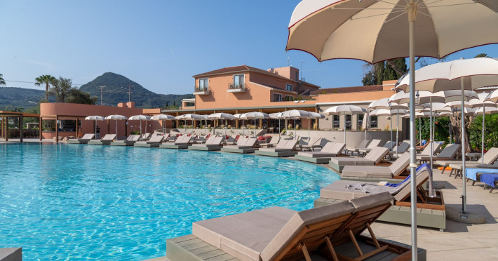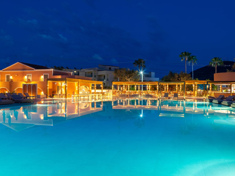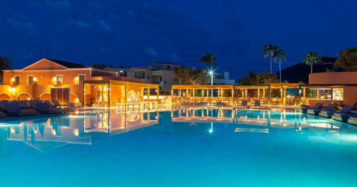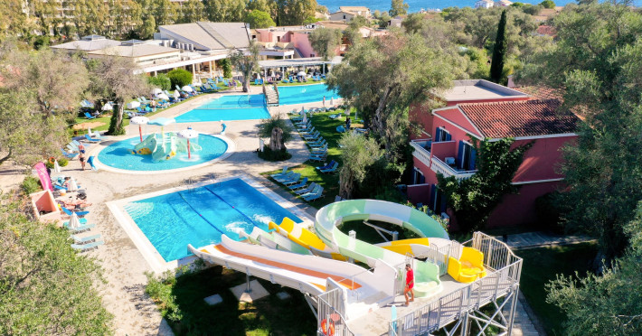 SENTIDO Apollo Palace is a family-friendly & couples friendly hotel built in the style of a Corfiot village. The hotel is located at the edge of the fishing village of Messonghi, just a few steps away from the beach and numerous cozy tavernas. Here you stay in modern and stylish rooms, in a lavish garden filled with old olive-trees, a chapel, 3 bars, 2 restaurants, gym, meeting room, SPA. The outdoor area of SENTIDO Apollo Palace features 3 freshwater pools, 1 entertainment pool 1 families pool - each including 1 kids' pool - and for our couples a separate adult only pool with 2 jacuzzis and 2 water falls a pool bar and an a la carte restaurant . The hotel arranges a wide range of sporting activities for everybody, and the youngest guests are welcome to the hotel's kids' club, which will make their holiday into an unforgettable experience.